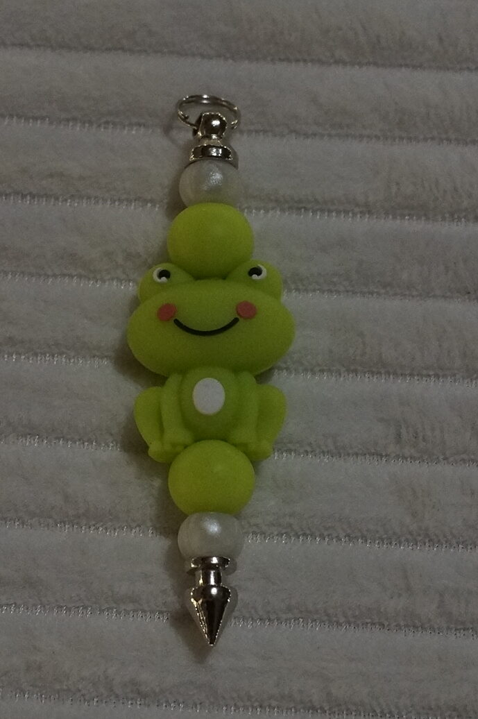 Een vrolijke groene vriend voor aan een tas of sleutelhanger om je te vergezellen op al je avonturen.